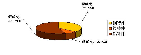 2785 K、Kg,占受访企业商品铸件总产量0.21%,其中包括铜合金、镁合金、铝合金,无条件细分至具体牌号及品种,如图【4】、表【10】: