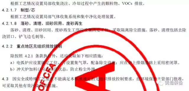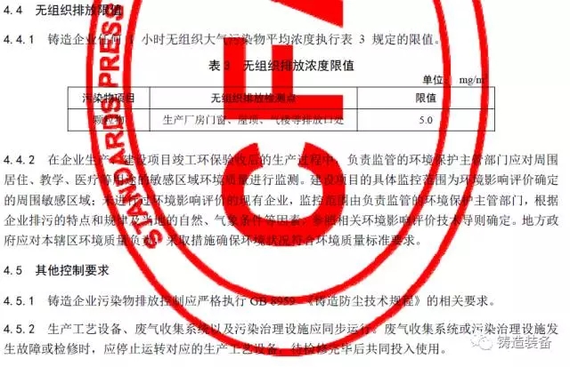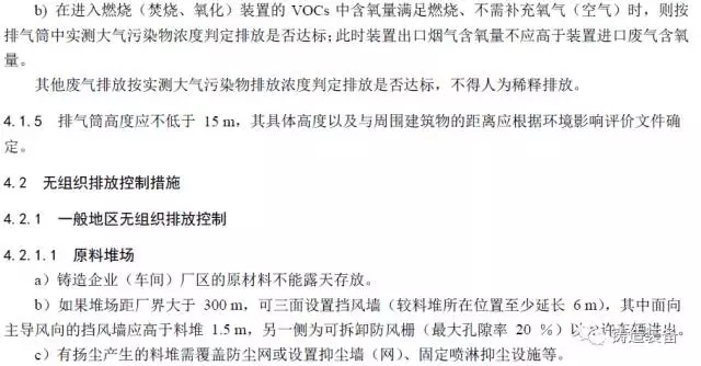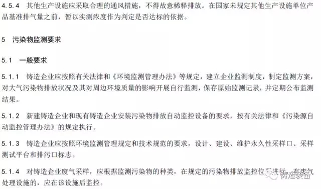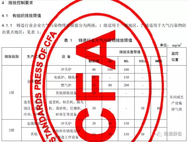 现摘录T/CFA030802-2—2017中“4排放控制要求”、“5污染物监测要求”、“6实施与监督”部分。前三部分“1范围、2规范性引用文件、3术语与定义”请自行登录中国铸造协会网站查阅。