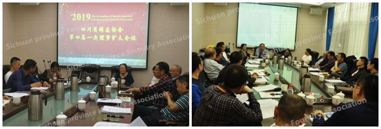 2019年4月19日下午2点,四川省铸造协会四届一次理事会扩大会在成都丽天花园大酒店贵宾楼1楼2号会议室召开,由于四届理事会刚换届,办公室主任暂未聘任,会议由三届秘书长杨梓华主持。