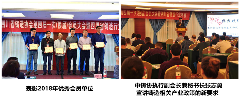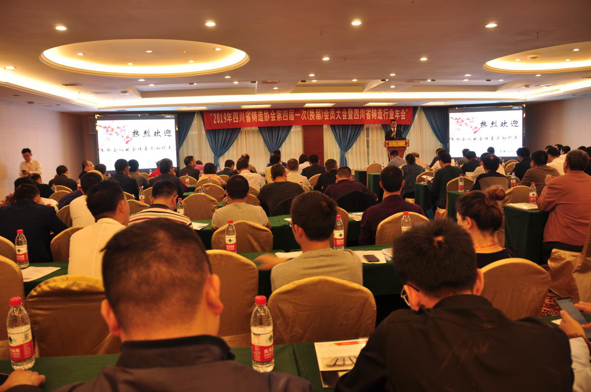 四川省铸造协会换届筹备组主持召开的四川省铸造协会第四届一次会员(换届)大会暨铸造年会于2019年4月20日在成都丽天花园大酒店分别隆重召开;其铸造年会主题:“走绿色、智能发展之路,促企业创新发展”。