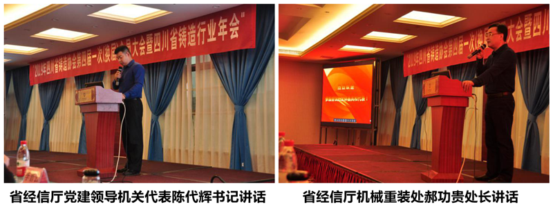 四川省经信厅党建领导机关代表(三联合党支部书记)陈代辉对协会换届工作情况总结讲话;省经信厅重大装备与机械处郝功贵处长对四川省铸造协会四届届理事会提出了要求和希望;新当选的协会四届理事会理事长何安云述职讲话。