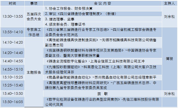本次会议将发布2025年四川省铸造企业调研基本情况、四川省2025年新建技改铸造项目,同时还将对《四川省铸造行业高质量发展实施方案(公示稿)》、四川省铸造行业“十五五”规划及近期出台的相关产业政策进行解读;大会邀请了型砂管理、熔炼管控、铸钢、耐磨材料与铸件、高性能球铁、高效发热冒口/发热补贴、消失模铸造、铸造管理等行业实战专家技术分享(部分演讲专家介绍详见附件1)。同时为有助于铸造企业拓展市场,会议期间还将发布铸件需求信息。现将会议有关事项通知如下: