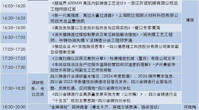 2026四川省铸造行业年会部分特邀演讲嘉宾及提纲介绍